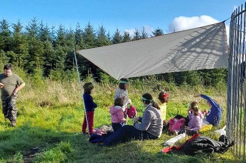 Szombaton elindult az ács tábor, ahol két nap alatt egy asztalt padokkal, egy másik asztalt asztali tűzhelynek és egy táborkaput építettünk az erdőben.