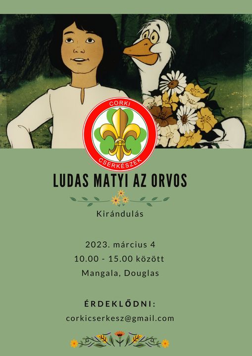 / Programjaink (lezajlott) / By webcreative Ludas Matyi, az orvos KIRÁNDULÁS - 2023. március 4. Gyertek, gyógyítsuk meg szegény Döbrögit. Következő foglalkozásunra hozzatok nyakkendőt, cserkészfüzetet, vízhatlan cipőt, nadrágot, kabátot, tízórait, vizet… kirándulni megyünk. Jelentkezem cserkésznek→
